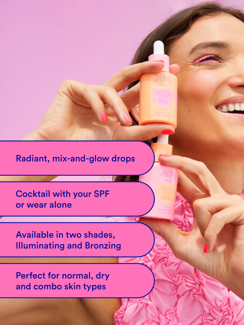 Mixing your SPF with makeup might seem like a time-saving hack, but guess what? You’re also messing with your level of sun protection, so it’s really a time-waster – or at least it was, until Vi invented her sell-out Queen Screenâ„¢ Super Glow Drops! Made to seamlessly layer or mix in or with your SKINSCREENâ„¢, this SPF 50 melt-into-the-skin serum formula works for all skin types and has two radiant shades – Illuminating and Bronzing – so that you control the glow.Â